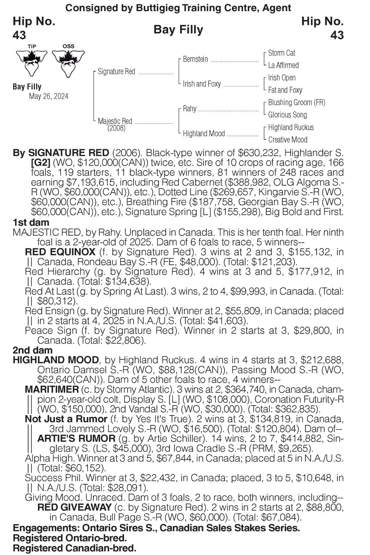 FIRST – APPLICABLE LAW: All horses in this sale are offered according to these Conditions of Sale and the laws of the Province of Ontario wherein the sale is conducted. All interested parties, including sellers, consignors, agents, owners, and prospective purchasers or bidders participating via any online bidding process and all sales via any bidding process are bound by said Conditions of Sale, any announcements, and any provisions set forth on the digital sales platform.