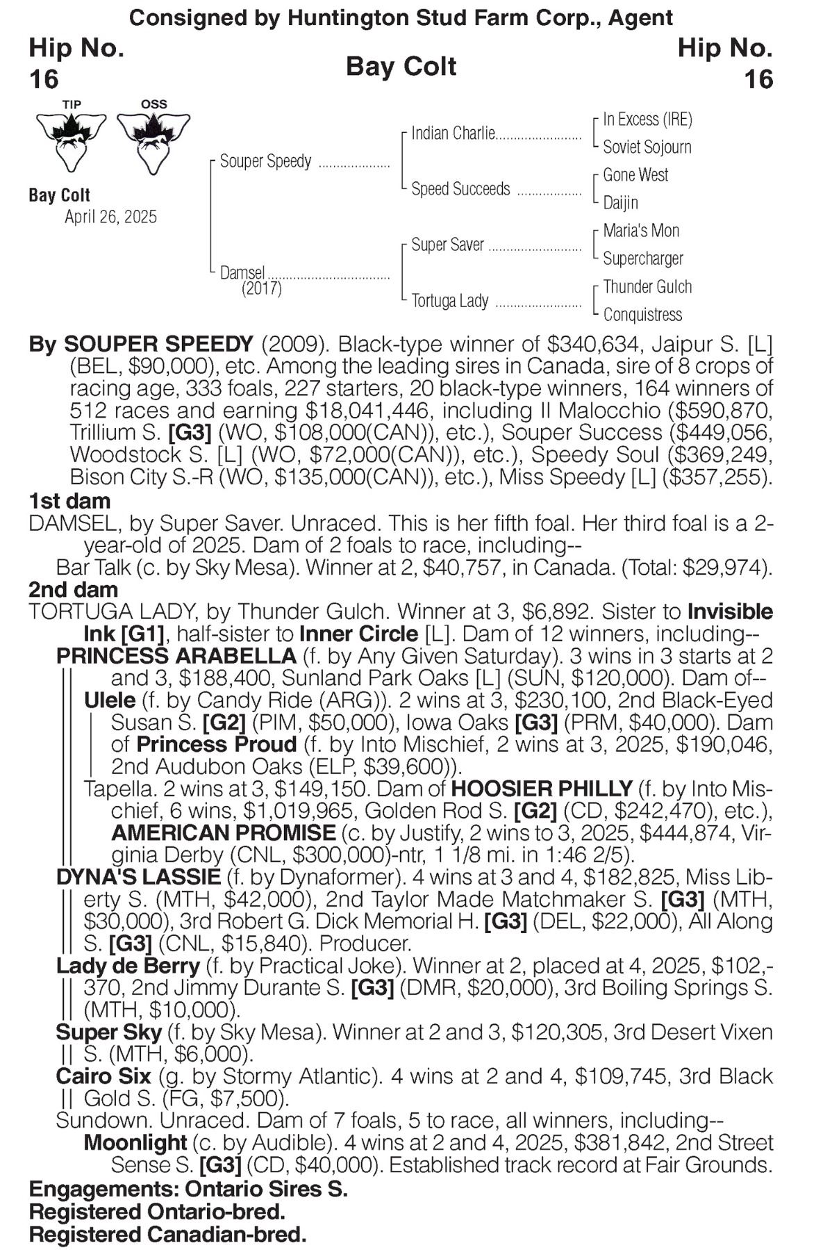 Consignor: Huntington Stud Farm Corp., Agent