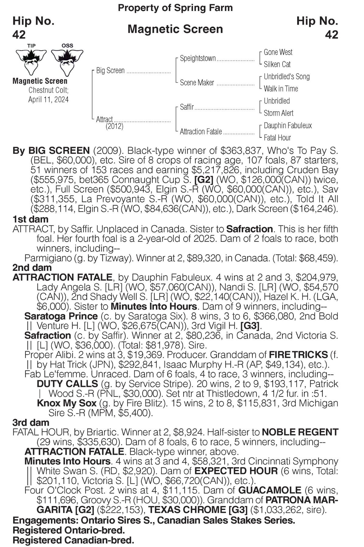 Sire - Dam: Big Screen - Attract