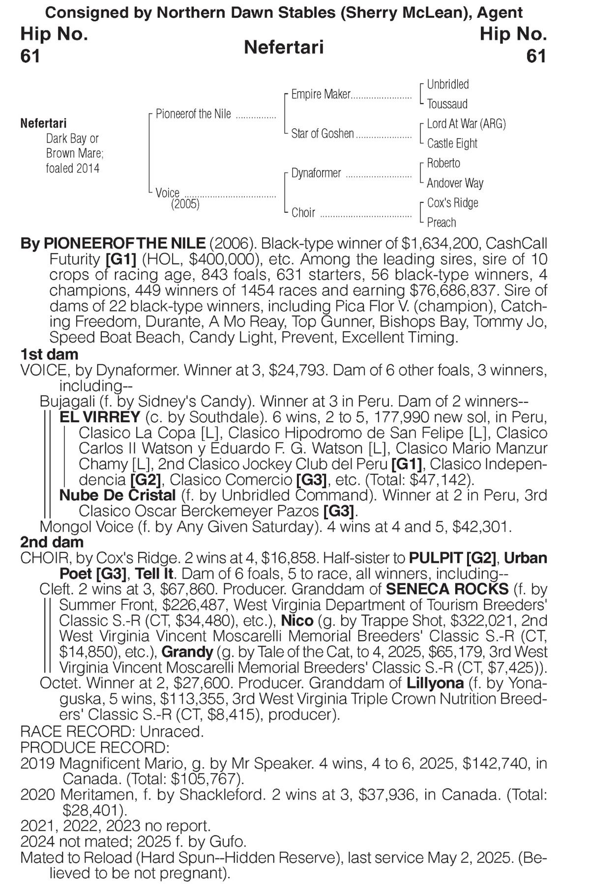Sire - Dam: Pioneerof the Nile - Voice